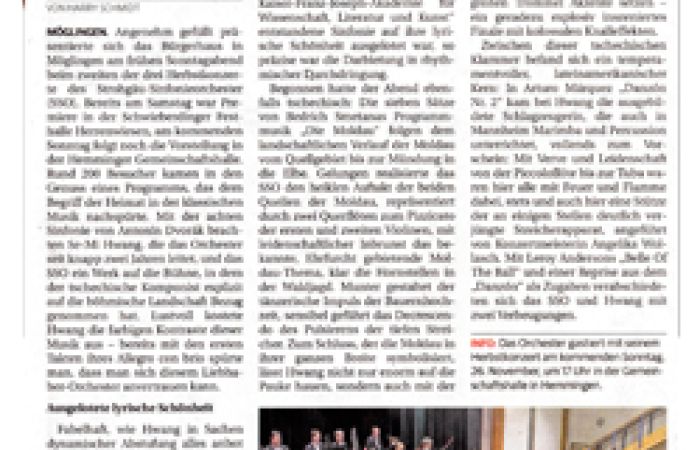 Ludwigsburger Kreiszeitung, 18.11.2023, Harry Schmidt Eine musikalische Reise nach Amerika bietet das Strohgäu-Sinfonieorchester in den nächsten Tagen an: Dvorák und Bernstein stehen auf dem Programm der Herbstkonzerte. Erstmals gestaltet Dirigen…
