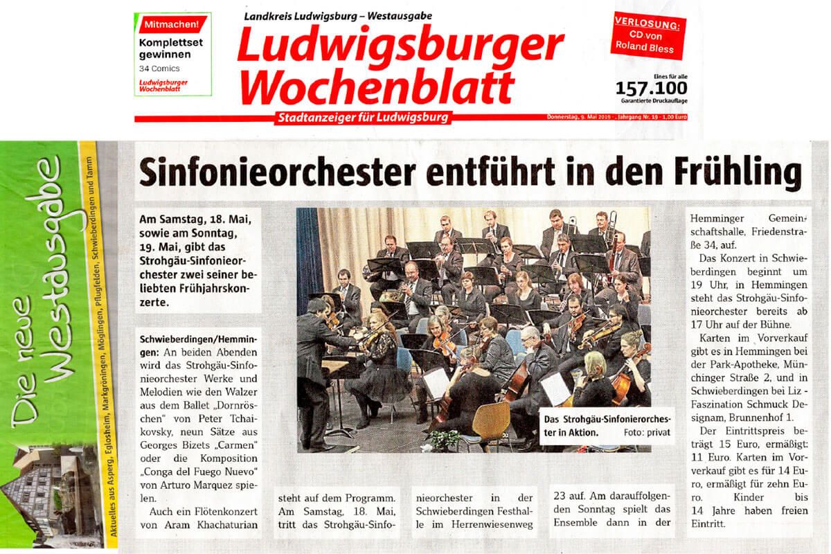 Konzertankündigung vom 9. Mai 2019 des Ludwigsburger Wochenblatts.