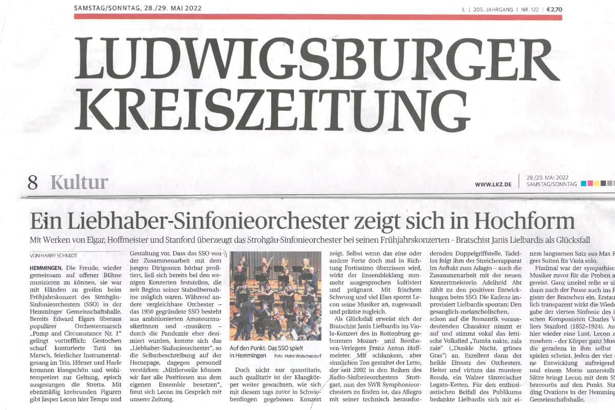 Ludwigsburger Kreiszeitung, Artikel vom 28./29. Mai 2022, von Harry Schmidt