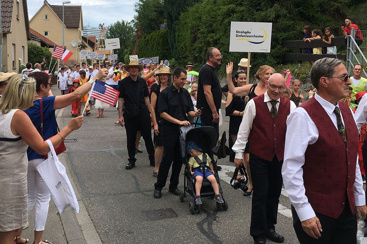 Beim großen Umzug in Schwieberdingen anlässlich der Einweihung der Stuttgarter Straße und dem anschließenden Schapfenfest war auch das Strohgäu-Sinfonieorchester präsent.